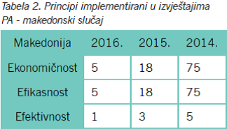 Tabela 2. Principi implementirani u izvještajima PA – makedonski slučaj