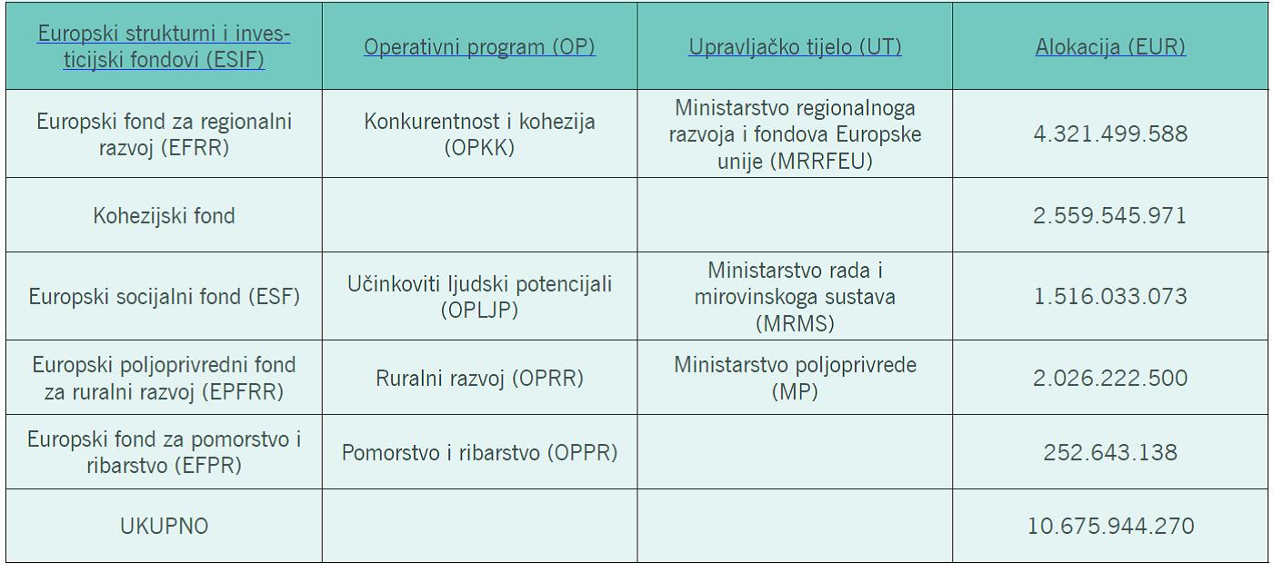 Tabela 1. Raspodjela alokacije iz Europskih strukturnih i investicijskih fondova za Republiku Hrvatsku 2014. – 2020.